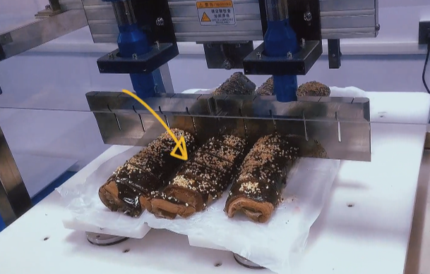 HDMS-DJB600S Ultrasonic food cutting machine is an automatic cutting equipment using ultrasonic technology, which is used to process sticky, frozen, delicate and complex products.Such as mousse cake, frozen cake, cheese cake, sponge cake, nougat candy, cream cake, swiss roll, toast bread, butter, Napoleon and other products. The model is suitable for sheet, triangle and rolled products.